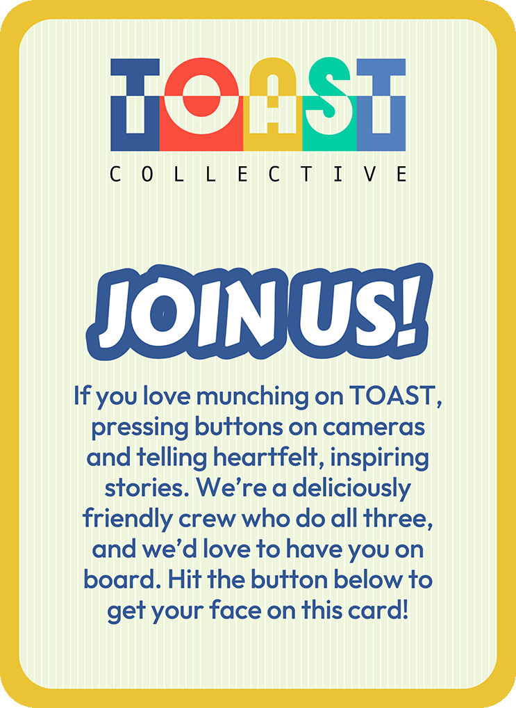 We’ve built a collective of talented freelancers who understand the sensitivity, empathy and respect required to work with the people you support. TOAST Collective are here to tell your stories with heart and a healthy side of fun.